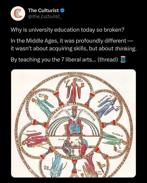 After that, you’re ready for the quadrivium: arithmetic, geometry, music, astronomy. Why were they grouped as sciences? Because ancient thinkers believed the universe was bound by a mathematical harmony (including music) …