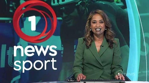 News broadcaster Oriini Kaipara wearing her moko kauae with mana.